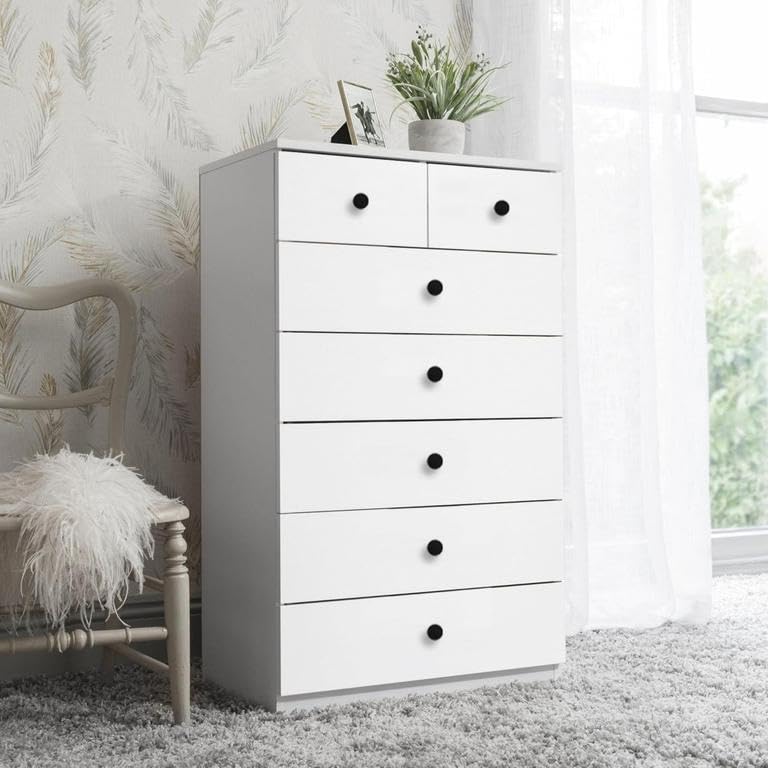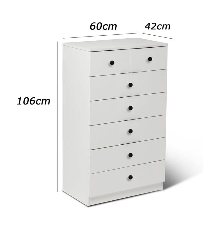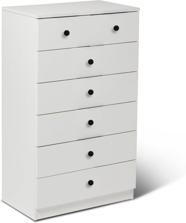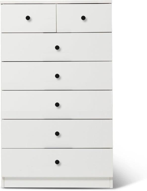- وحدة ادراج مودرن ام دى اف - ارتفاع 106 سم - عرض 60 سم - عمق 42 سم ، تتكون من 7 ادراج ، مصنوعة من ال MDF عالي الجودة ، سُمك 16مم ، مع طبقة ملامين خارجية من اللون الأبيض المطفي. مع ميكنزم معدن (مجرة الدرج معدن 2 مرحلة) ، فنش عالي الجودة ، من فرنتشر ستور.