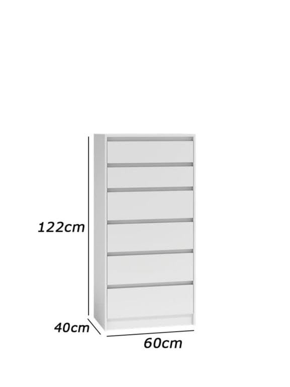 - ModernMDF Insert Module - Height 48 Cm - Width 60 Cm - Depth 40 Cm , Consists Of 6 Drawers, Made Of High Quality MDF, 16mm Thick, With A Matte White Melamine Outer Layer. With Metal Makenzm (Metal Stage 2 Stage), Fench, High Quality by Furniture Store.