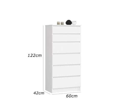 - وحدة ادراج مودرن ام دى اف - ارتفاع 122 سم - عرض 60 سم - عمق 42 سم ، تتكون من 6 ادراج ، مصنوعة من ال MDF عالي الجودة ، سُمك 16مم ، مع طبقة ملامين خارجية من اللون الأبيض المطفي. مع ميكنزم معدن (مجرة الدرج معدن 2 مرحلة) ، فنش عالي الجودة ، من فرنتشر ستور.