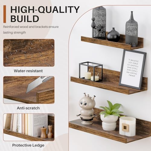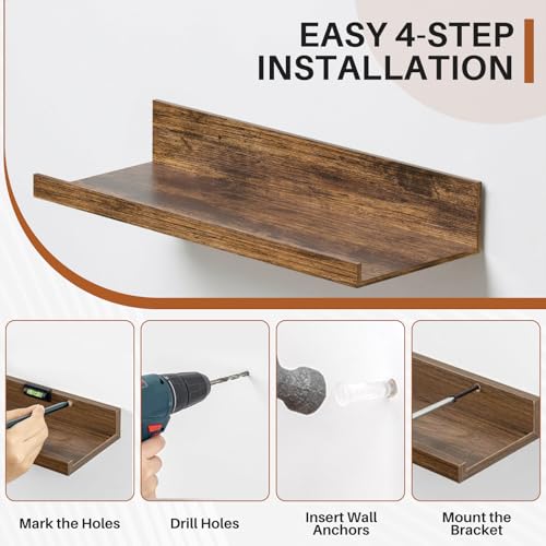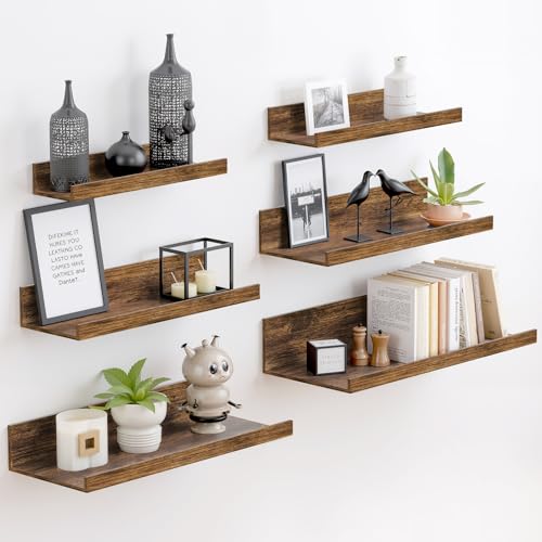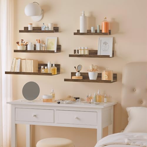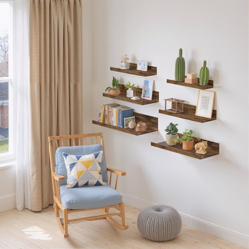 - 【SpaceSaving Wall Storage】 This set of 6 floating shelves maximizes your wall space, helping keep your room clean and clutterfree. Each shelf features a raised edge to prevent items from slipping off, perfect for displaying books, decor, or frequently used essentials.