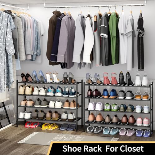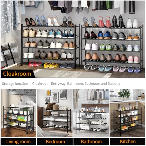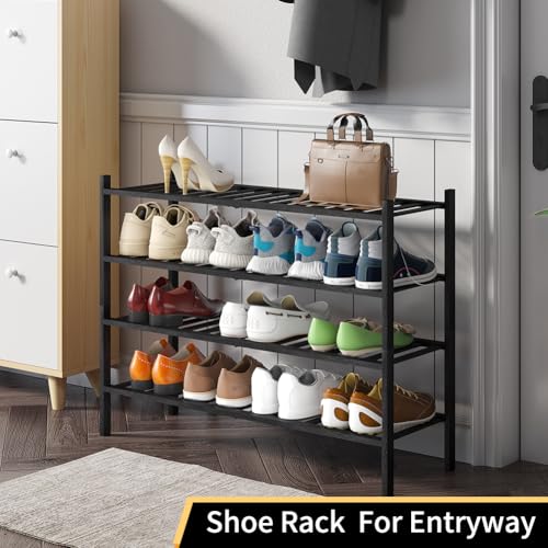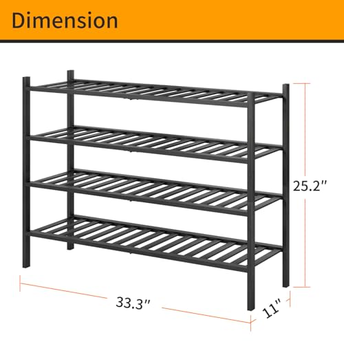 Furshus - Long Shoe Rack, 4-Tier Bamboo Stackable Shoe Shelf Storage Organizer, Shoe Stand for Closet, Entryway and Hallway(BLACK)