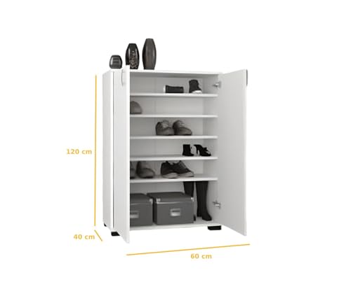 Furvive Furniture - MDF Wood Shoe Rack, 120 cm Height x 60 cm Width x 40 cm Depth, White