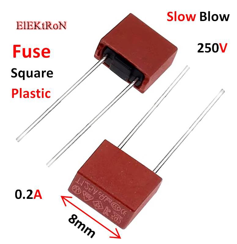 - فيوز 0.2 امبير 200 مللي امبير - صمام مربع بطيء 0.2 امبير 200 مللي امبير بلاستيك 250 فولت للوحة الطاقة لتلفزيون LCD T0.2A T200mA