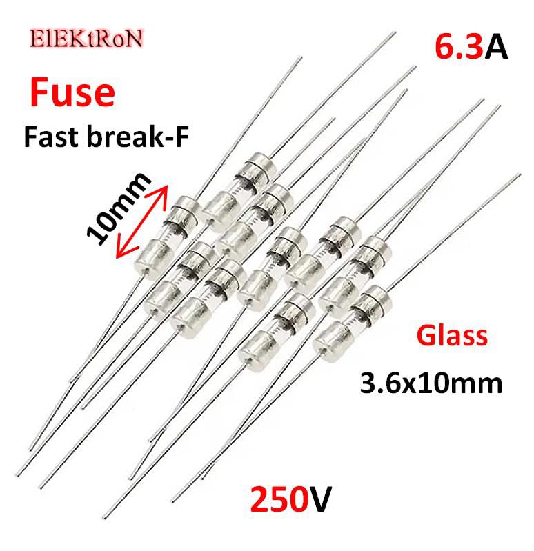 - Fuse 6.3A Fast break-F 250V 3.6*10 Fast-blow Glass 4x10mm Tube Fuse Fast Break With pin 4 x 10mm