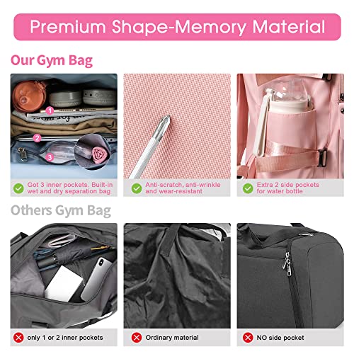 - Dry & Wet Separated Gymbag: This sports gym bag delivers spacious inner storage with 1 large main compartment for dry & clean clothes or everything for gym & traveling you necessary; and 1 zipper wet pocket with high-density water-resistant material, which for wet clothes or towels; in addition, 1 small compartment for other small items.