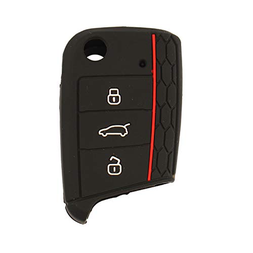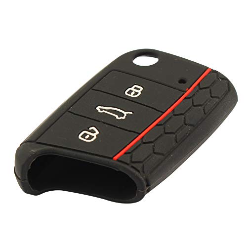 Futheda - جراب ريموت فوب قابل للطي مصنوع من السيليكون بـ3 ازرار مرنة من فوثيدا، متوافق مع جولف 7 GTI جولف VII MK7 اوكتافيا A7 وسيات وليون 5F SC ST (اسود) قطعتين