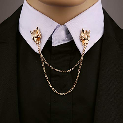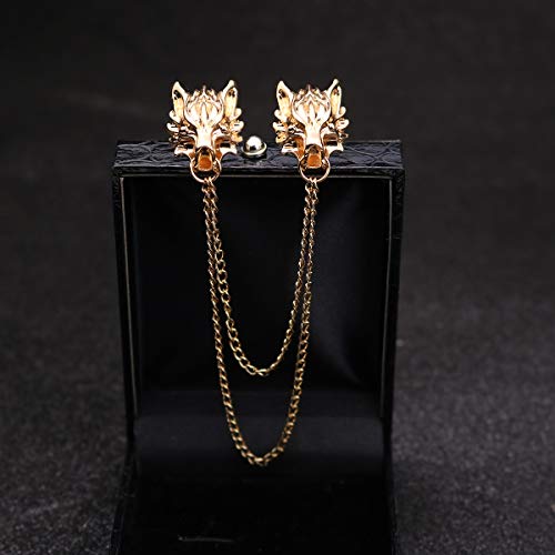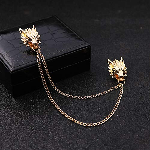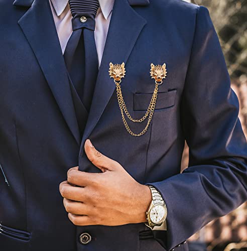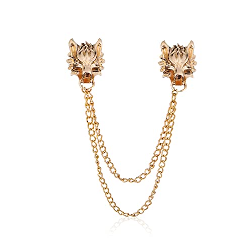 FUTIMELY - دبوس بروش بسلسلة طويلة على شكل راس ذئب شرير، دبوس بروش ذهبي وفضي على شكل راس ذئب، دبوس بروش رائع على شكل راس حيوان لياقة المعطف للرجال والنساء, معدن, خليط معدني