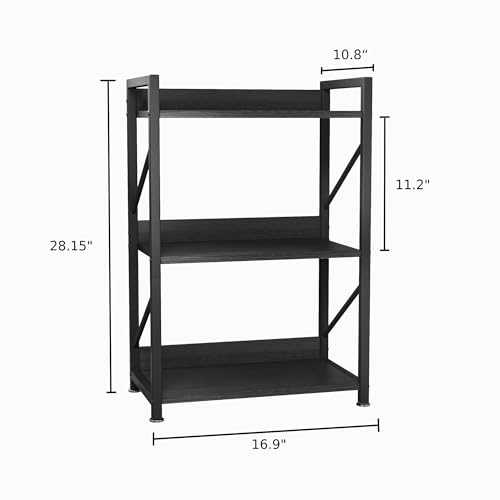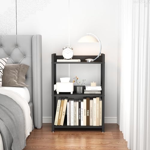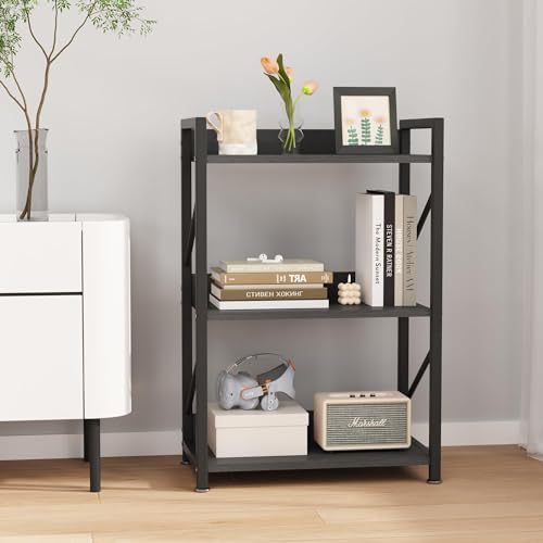 FUTRWORE - رف كتب صغير للمساحات الصغيرة من فوترور، خزانة كتب صناعية من 3 طبقات، منظم رف كتب ضيق، رف عرض صغير مفتوح لغرفة النوم وغرفة المعيشة والمكتب المنزلي (اسود)