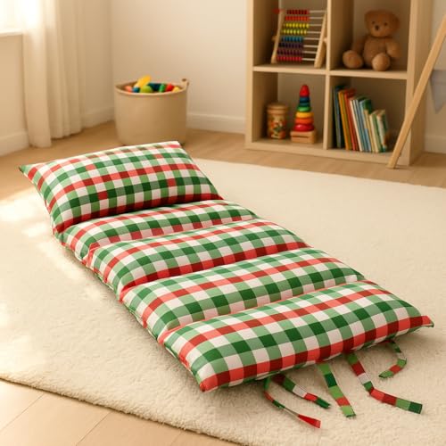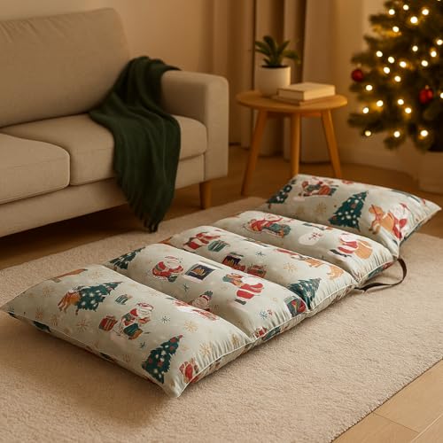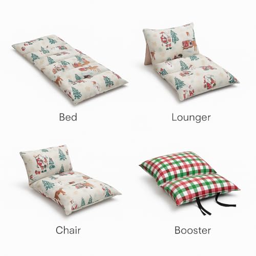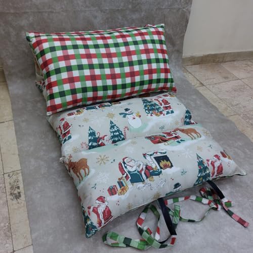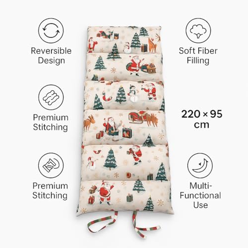 - 🎨 Reversible Dual-Color Design Each mattress comes with two different side colors/patterns (Example: Checkered Red-Green-White side + Santa Winter Theme side), letting you switch the look anytime.