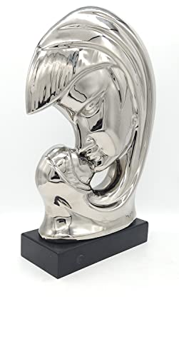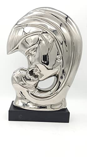 Generic - فاز بورسلين ديكور مطلي فضه علي شكل ام و طفلها، فضي