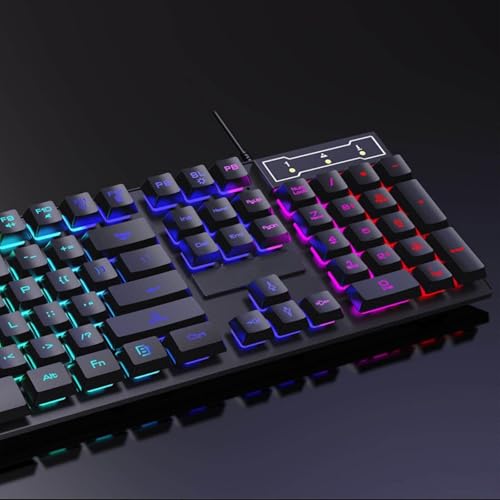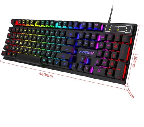 Generic - لوحة مفاتيح وماوس للألعاب مكون من 104 مفاتيح - FV-Q305S - مع إضاءة RGB، مقاوم للغبار والماء، باللون الأسود.