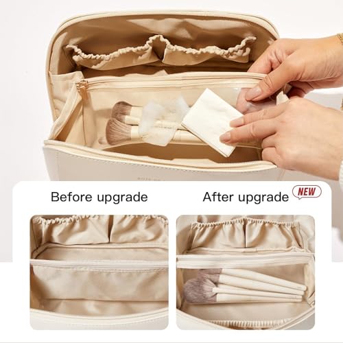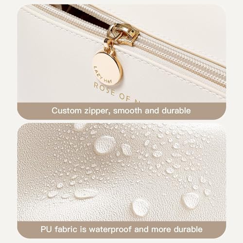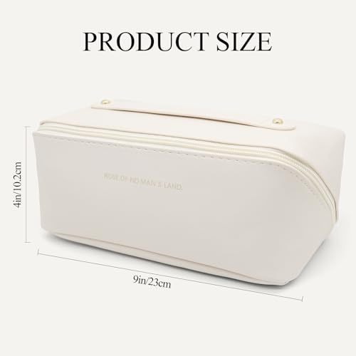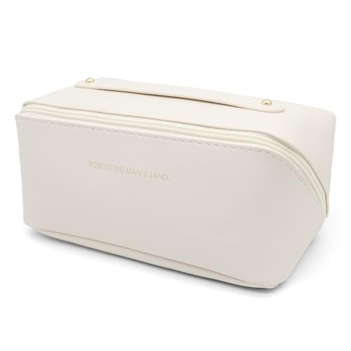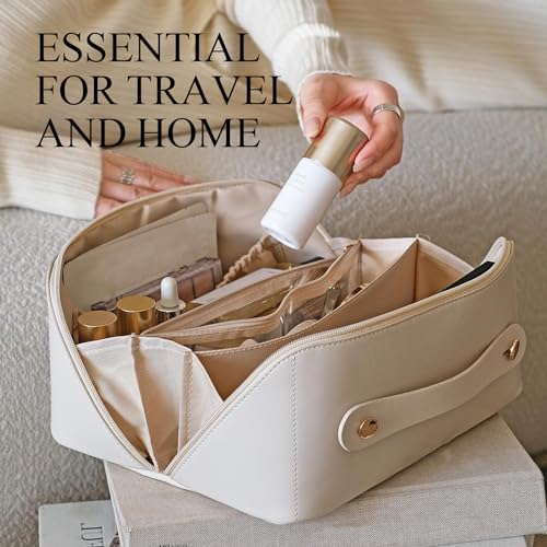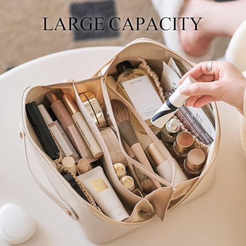 Fviewza - Travel Cosmetic Makeup Bag Large Capacity Waterproof Portable Organizer and Storage PU Leather Makeup Organizer Bag for Gift for Women Girl (White)