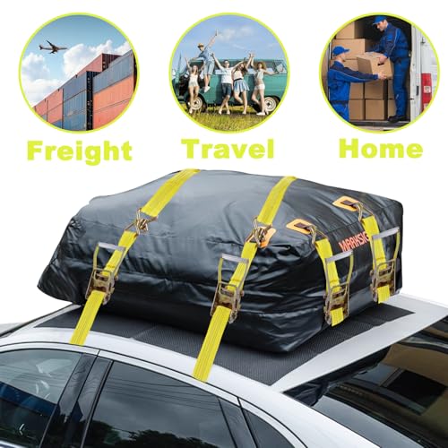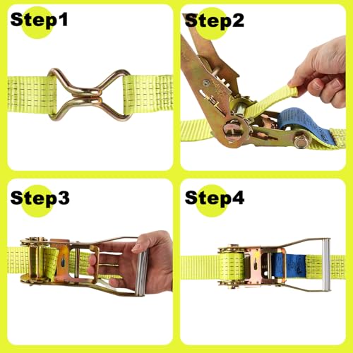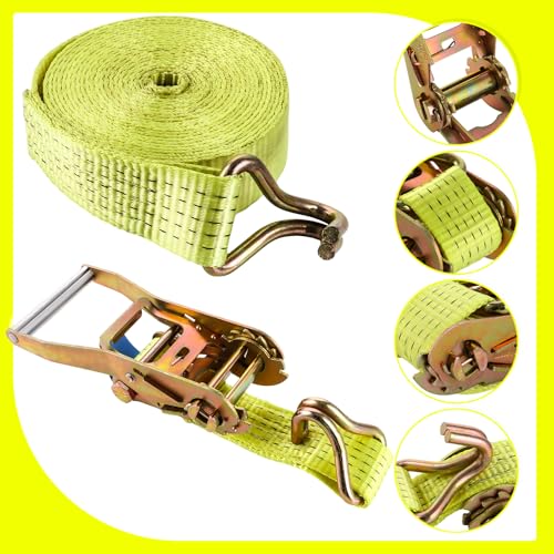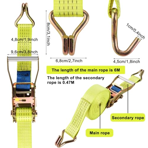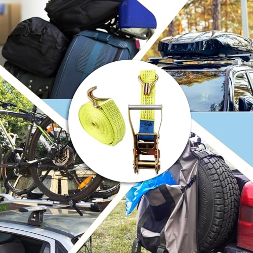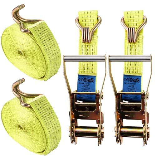FWEEK - أحزمة ربط لوزن 5000 كجم بطول 6 متر، أحزمة ربط بسقاطة مع خطافات، حزام ربط شديد التحمل لوزن 5 طن للشاحنات والسيارات والدراجات النارية من فويك - لون أصفر، مجموعة من قطعتين