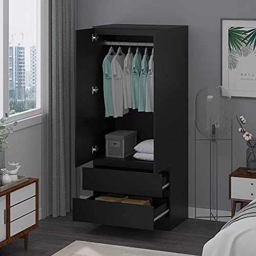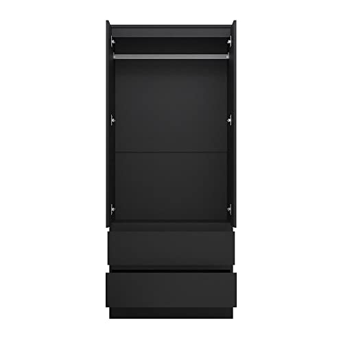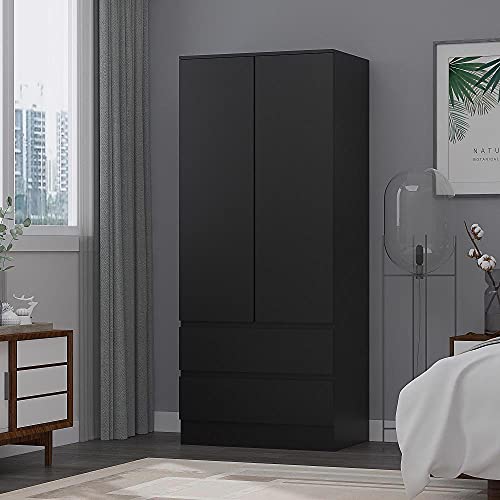 FWStyle - خزانة ملابس كبيرة وعميقة ببابين ودرجين بنمط اسكندنافي اسود غير لامع من اف دبليو ستايل
