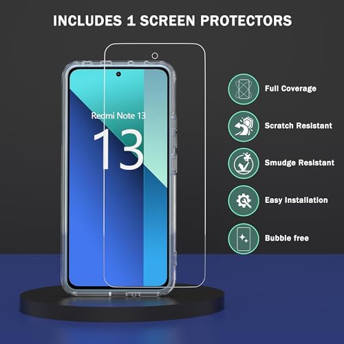 - 【Compatibility】Only compatible with Xiaomi Redmi Note 13 4G (6.67") with 1 x Tempered Glass Screen Protector (Including:1 x Xiaomi Redmi Note 13 4G Cover + 1 x Tempered Glass)