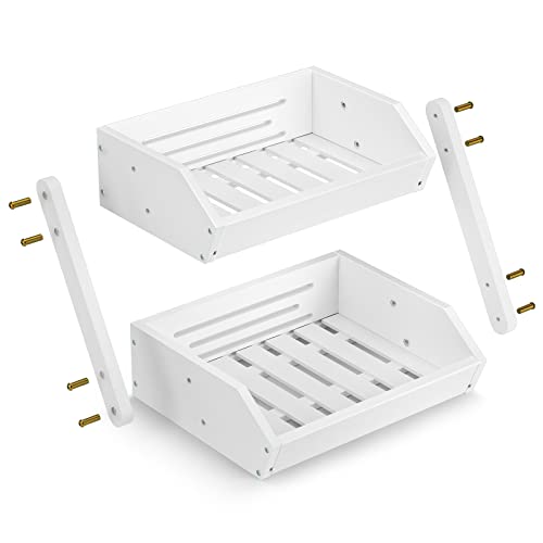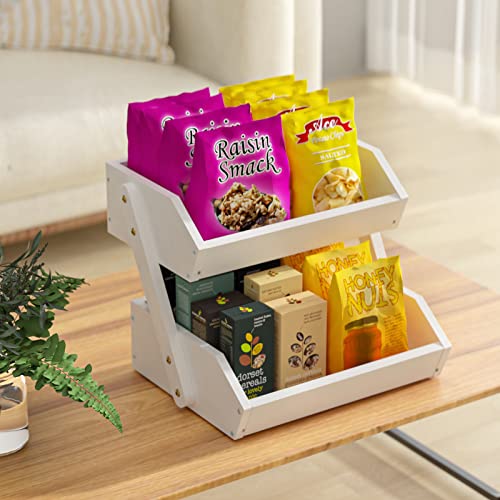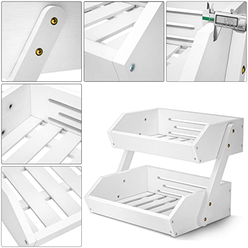 G.a HOMEFAVOR - G.a HOMEFAVOR 2 Tier Bamboo Fruit Basket Stand, Vegetable and Bread Stand for Kitchen Shelf, Snack Rack for Home Kitchen and Office, White