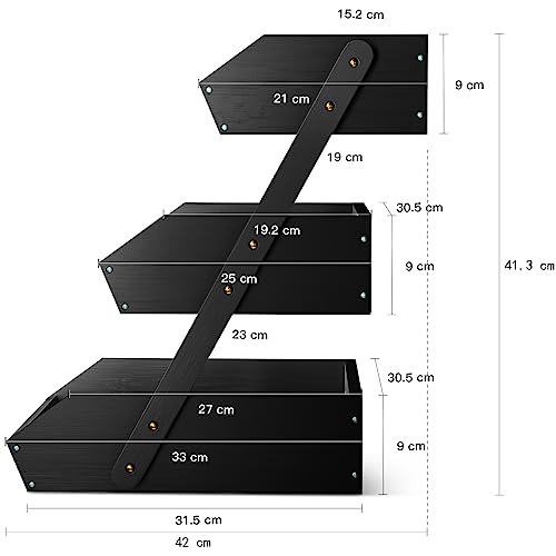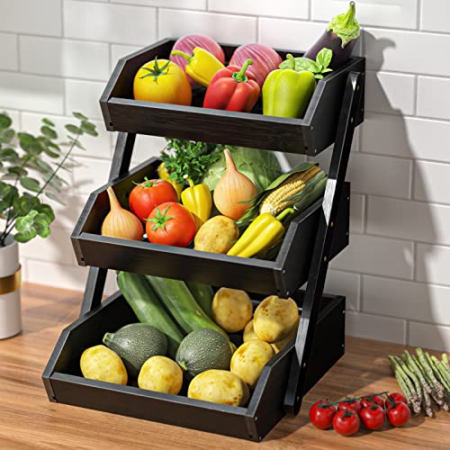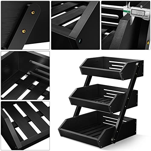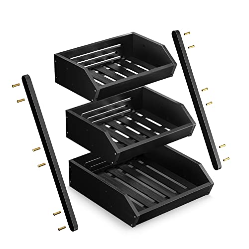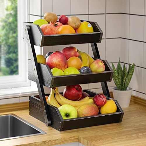 G.a HOMEFAVOR - G.a HOMEFAVOR 3-Tier Bamboo Fruit Basket Bowl Holder, Bread Vegetables Storage Stand for Kitchen Countertop, Snacks Rack in Home Kitchen and Office, Black