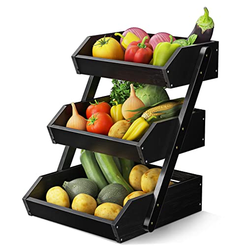 - 【3-tier Bamboo Fruit Basket】3-tier design is very convenient to take your items out of it, perfect solution for daily storage and save space, keeps your kitchen and dinning room well organized and tidy. The 3-tier fruit basket is large enough to storage a variety of items.