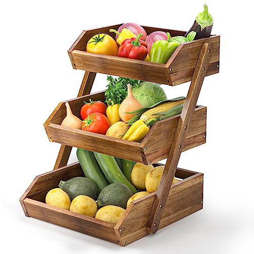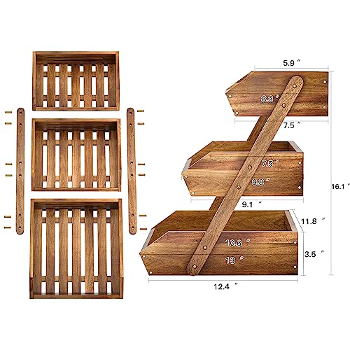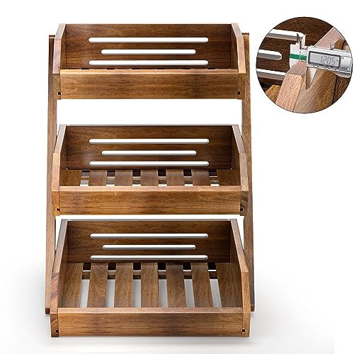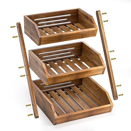 G.a HOMEFAVOR - جي ايه هوميفافر سلة فاكهة من خشب الاكاسيا، وعاء فاكهة، سلة فاكهة من 3 طبقات للمطبخ، حامل تخزين الفاكهة (تجميع ذاتي)