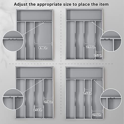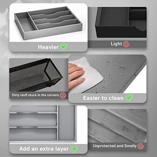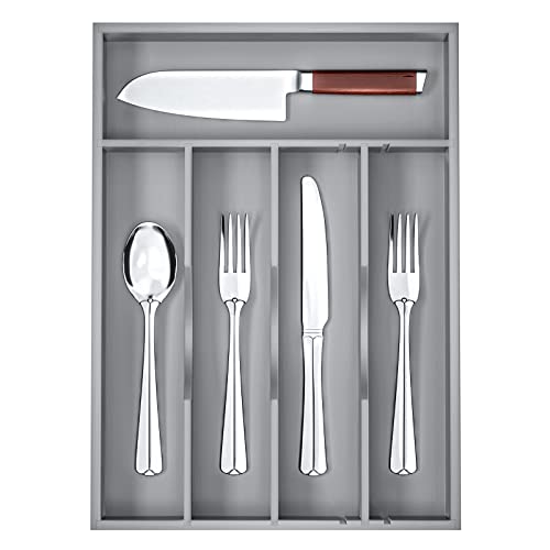 G.a HOMEFAVOR - جي ايه هوميفافر صينية فضية للادراج - منظم ملاعق 10 انش لادراج المطبخ - منظم درج المطبخ للادوات الفضية والاواني وادوات المائدة ومستلزمات المنزل، 10 انش × 14 انش × 2 انش، رمادي