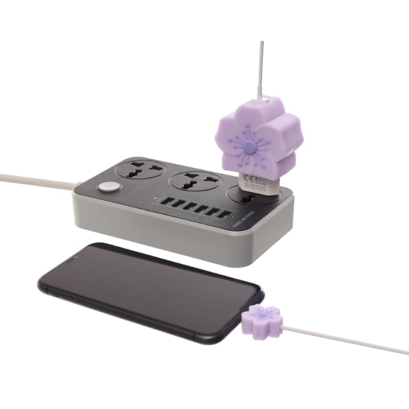 G-POWER - G-Power 2 In 1 Silicone Charger And Cable Protective Kit With Cute Flower And Powerful Protect Design Compatible All Chargers Set Of 2 Pieces - Purple