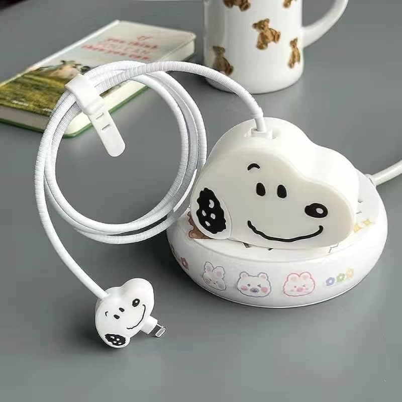 G-Power - واقي شاحن من السيليكون المتين وواقي كابل مصمم على شكل كلب لطيف CH-110 من جي باور، مجموعة من 2 قطعة - أبيض وأسود