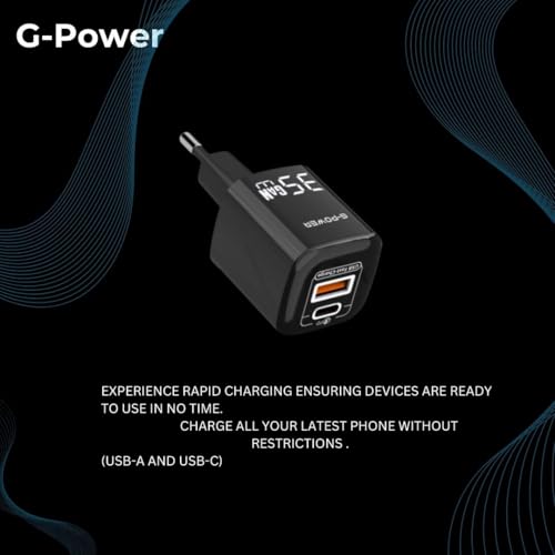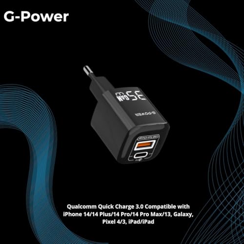 G-POWER - G-Power GP-C21 35W Dual USB Charger (USB-A and Usb-C) Qualcomm Quick Charge 3.0 Compatible with iPhone 14/14 Plus/14 Pro/14 Pro Max/13, Galaxy, Pixel 4/3, iPad/iPad - Black
