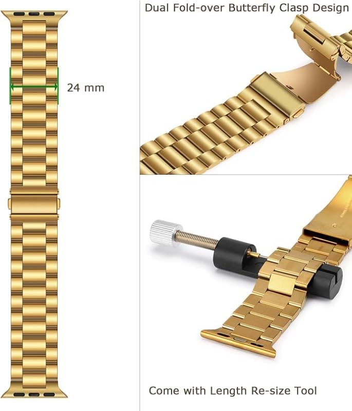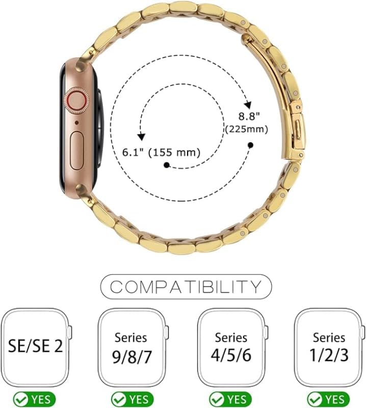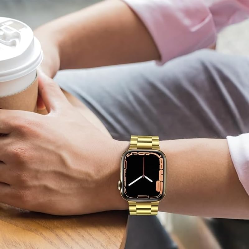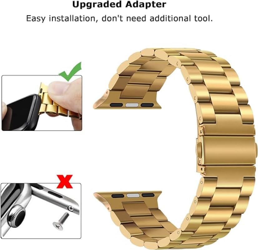 G-Power - سوار معصم بديل من الفولاذ المقاوم للصدأ من جي باور، بتصميم بسيط أنيق ومرونة عالية خصيصًا لساعات ابل الذكية سلسلة 1/2/3/4/5/6/7، ذهبي