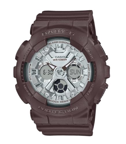 Casio - G-Shock Casio Women Watch Baby -G Analog Digital Silver Dial Dark Chocolate Color Resin Band BA-130SW-5ADR