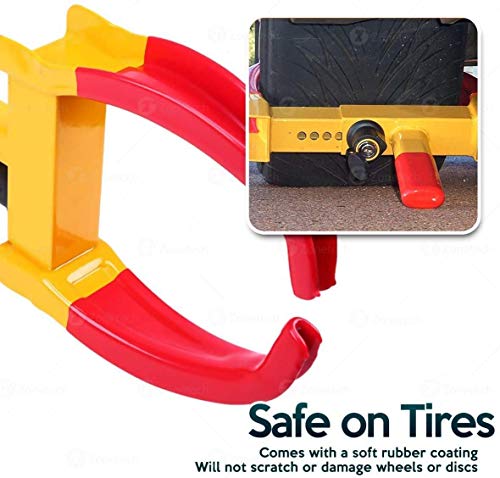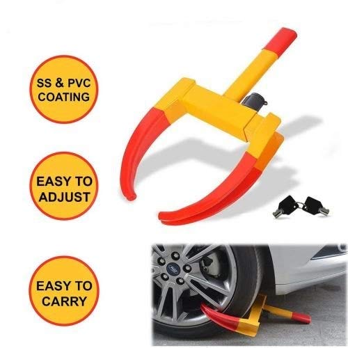 - ⚠HELPS IN SAFE PARKING: Tyre clamp provides an added advantage of parking. Use this clamp while parking your vehicle on a slanting or slippery surface which will not allow your vehicle to move. Also it will not allow the Towing of your Car.