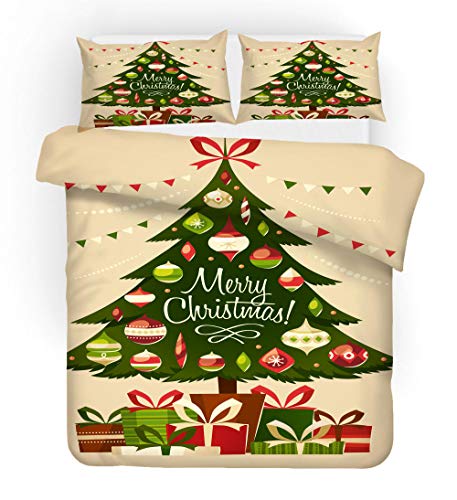 Gabapipa - 3 Pieces Printed Duvet Cover Green & Christmas tree King Size 220 x 230 cm Bedding Set Woman Man Comforter Cover Soft Bedding Set Teenagers Quilt Cover with 2 Pillowcases