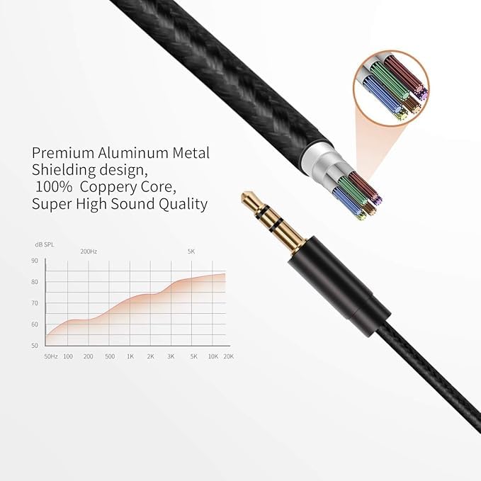 - كابل Aux سلك مضفر من النايلون GAC-363 لموبايل آيفون 13/12/X/XS/11/11 برو/11 برو ماكس/8/8 بلس/7/7 بلس، كابل AUX 3.5 ملم لستيريو السيارة ومكبر الصوت وسماعات الرأس يدعم جميع أنظمة iOS