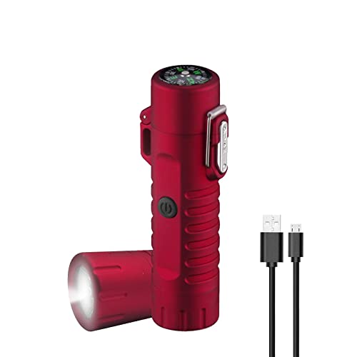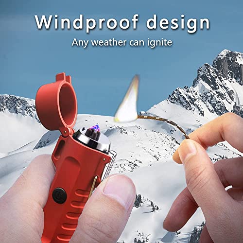 GADATOP - GADATOP Electric Lighter Waterproof Double Arc Lighter Outdoor Windproof Lighter with LED Flashlight Rechargeable USB Lighter Flameless Plasma Lighter with Lanyard Suitable for Camping (Red)