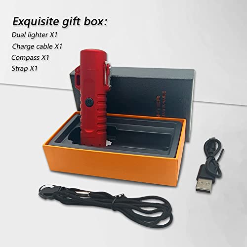 - 🔥【Economic & Eco-Friendly】 Against other old torch electric lighter. The main body of our Flashlight Lighter was made of Aluminum Alloy + ABS. Upgrade Surface Treatment makes it Practical & Durable. It won’t let your friend feel it was cheap like others when then had it in hand. Non-slip surface, equipped with a hand strap and clip either make it better to carry.Build-in rechargeable lithium battery,no gas or butane required,no more refilling,save you money,clean and convenient.