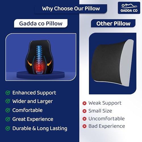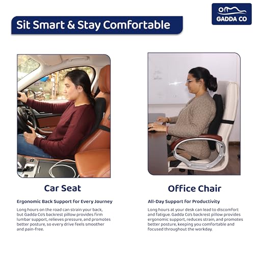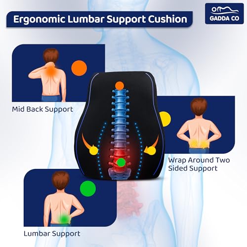 GADDA CO - دعامة ظهر لمقعد السيارة من جادا كو | ضمان لمدة عامين | وسادة دعم قطنية من الميموري فوم | وسادة مسند ظهر مريحة لتخفيف الالم والقيادة المريحة | مقاس عالمي لجميع مقاعد السيارات | اسود