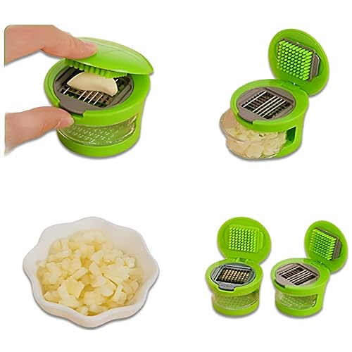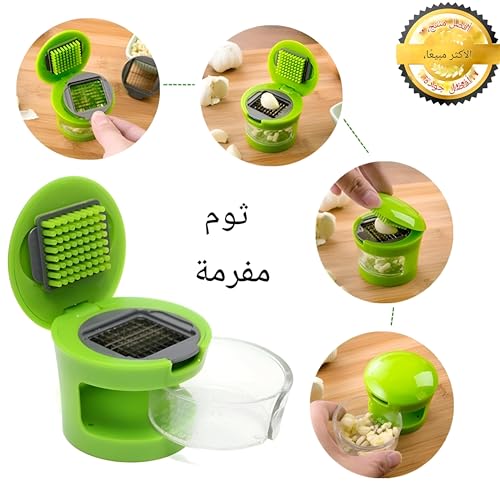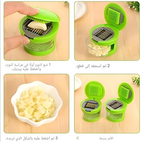 Generic - قطاعة وكسارة ثوم متعددة الاستخدامات بتصميم متين من الستانلس ستيل وصينية شفافة من جادجيت (4 قطع)