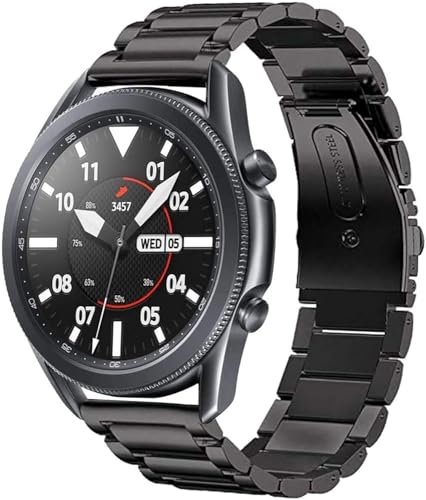 GadgetCom - Band Compatible with Samsung Galaxy Watch 3 45mm, Stainless Steel Quick Release Metal Replacement Strap for Huawei GT 4 3 2 46mm (Black)