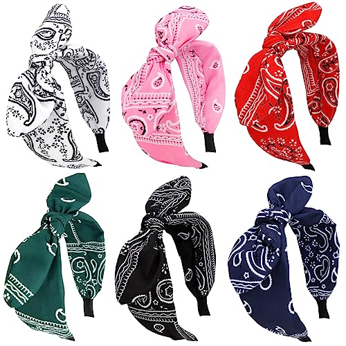 GAFATORY - Boho Bandana Headbands for Women - 6Pcs Wide Headband Set with Paisley Bunny Ears Designs for Girls' Hair Accessories
