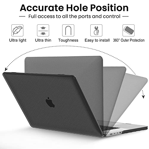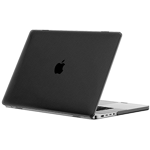 Gahwa - Gahwa Case Compatible with MacBook Pro 14 Inch M1 A2442 with M1 Pro/Max Chip (2021) with Touch ID, Ultra Thin Plastic Carbon Fibre Texture Hard Shell Snap Cover - Black