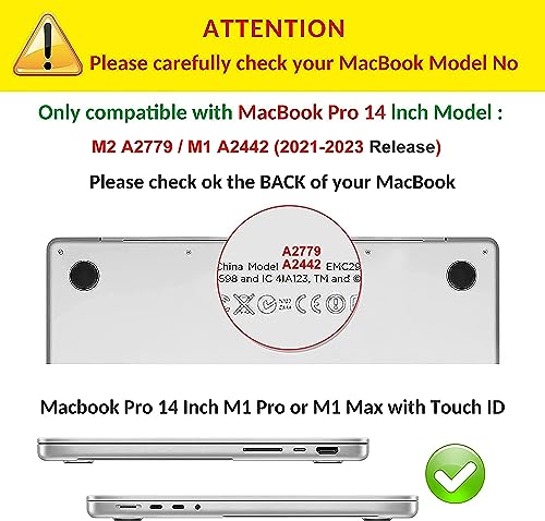 - Perfect fit compatibility: specially designed compatible with MacBook Pro 14 inch 2021 release model A2442 with M1 Pro / M1 Max chip, Liquid Retina XDR display and Touch ID. Not compatible with other models. Please check the model number on the back of the laptop before purchasing.