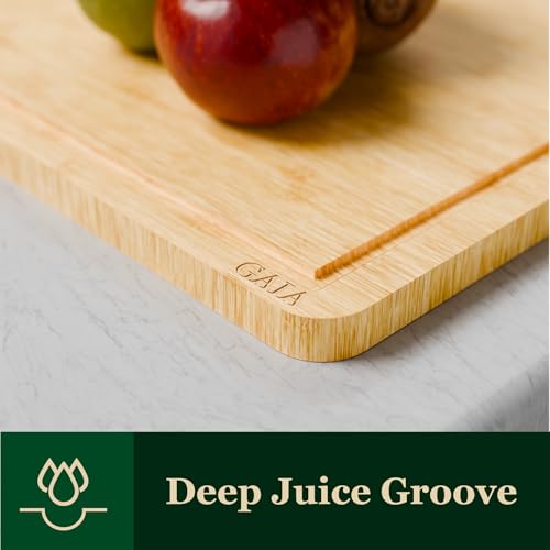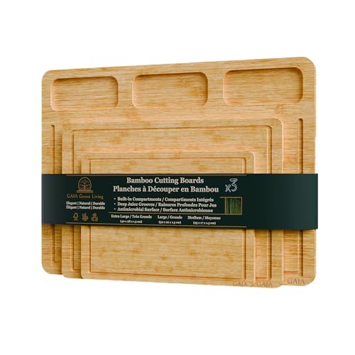 GAIA Green Living - Bamboo Cutting Board Set – 3-Piece Chopping Boards with Juice Grooves, Large Board with Compartment, Durable Eco-Friendly Kitchen Cutting Boards