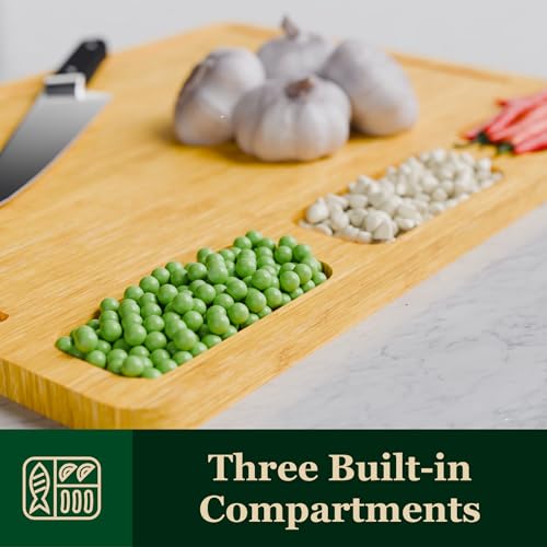 - PREMIUM SUSTAINABLE BAMBOO: Made from eco-friendly, high-quality bamboo, providing a durable and sustainable cutting surface while adding natural warmth to your kitchen.