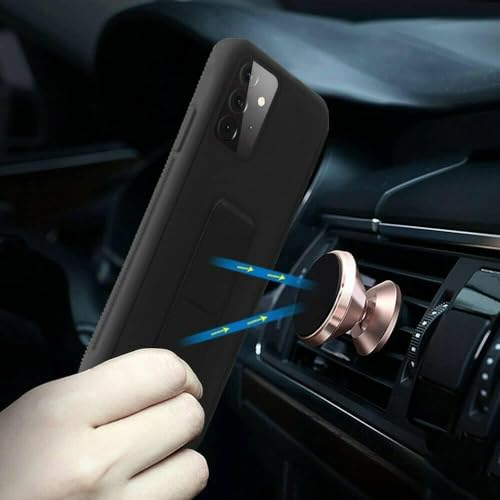Generic - Galaxy A04 Case Cover Magnetic Car Mount Kickstand & Holder, Premium Silicone Vertical & Horizontal Hand Strap and Grip with Multi Stand for Samsung Galaxy A04 (Black)