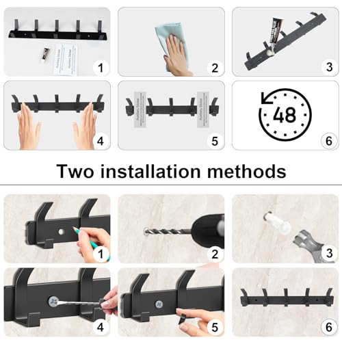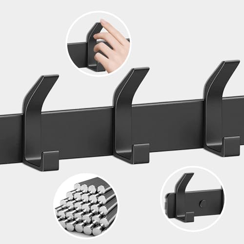 Galerie SV - خطافات معاطف جدارية عبوة من 2 خطاف معطف مع 5 خطافات معدنية لغرفة النوم والحمام والمطبخ ورف المعاطف من جاليري (لون أسود)