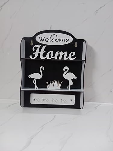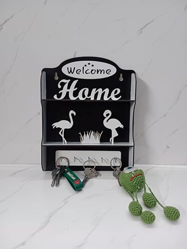 GALLERY DOAA Publication Gallery - حامل مفاتيح بعبارة Welcome Home and Flamingo من جاليري دوا لون اسود منجاليرى دعاء حديد الحد الأقصى للوزن الموصى به: 1.0 كيلوجرام