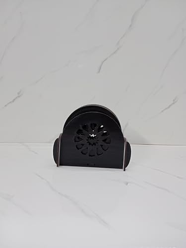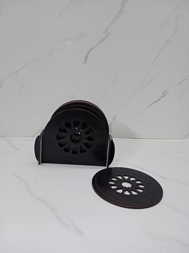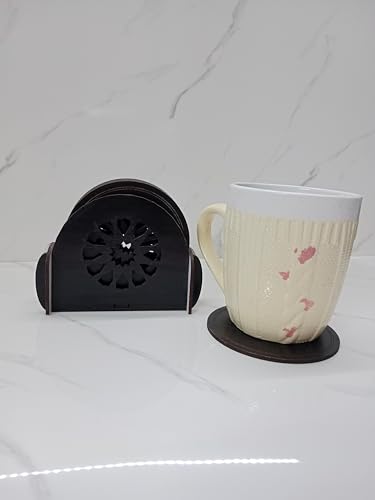 GALLERY DOAA Publication Gallery - قواعد اكواب خشبية من جاليري دوا، 7 قطع وحامل بسمك 3 ملم (بني عشوائي او اسود))