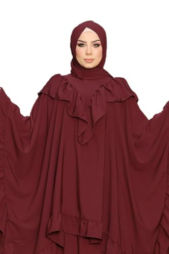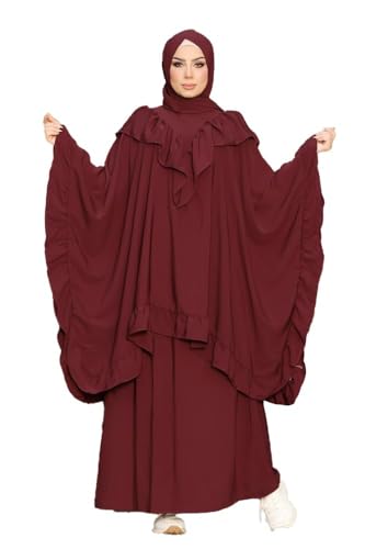 GAMAL SONS FOR ABAYA - ADNA ISLAMI 2 PC (RUFFLE TOP & SKIRT) ROYAL CREPE MODEL 9080 ONE SIZE WEAR UP TO 150K (MAROON)