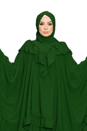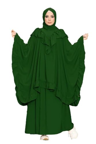GAMAL SONS FOR ABAYA - ADNA ISLAMI 2 PC (RUFFLED TOP & SKIRT) ROYAL CREPE MODEL 9080 ONE SIZE WEAR UP TO 150K (OLIVE)