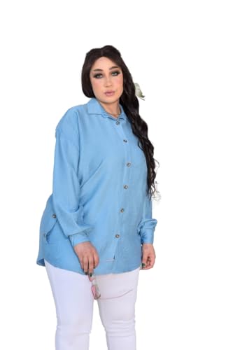 GAMAL SONS FOR ABAYA - بلوزه الخامه الكتان ونسيز تبيس الي 100 كيلو من جمال صنز للعبايات GS-156-42420-بيرنت بيبي ازرق، مقاس واحد
