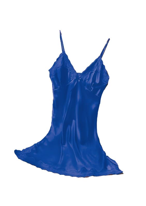 GAMAL SONS FOR ABAYA - قميص نوم دانتيل ساتان للنساء من جمال صنز للعباية GS-919-51016، لون ازرق، مقاس واحد